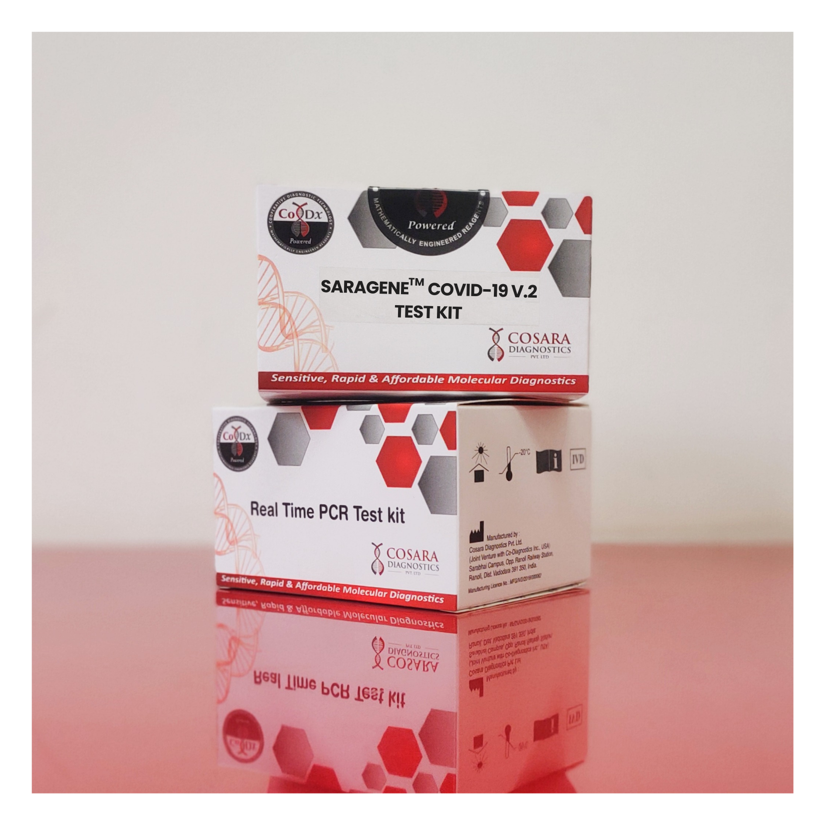 The SARAGENE® Covid-19 V.2 Real-Time PCR test is used for the qualitative detection of RdRp gene & E gene of SARS-CoV-2 virus that is responsible for causing Covid-19 in humans. The test includes an internal control to identify possible qPCR inhibition and verify the quality of sample extraction.