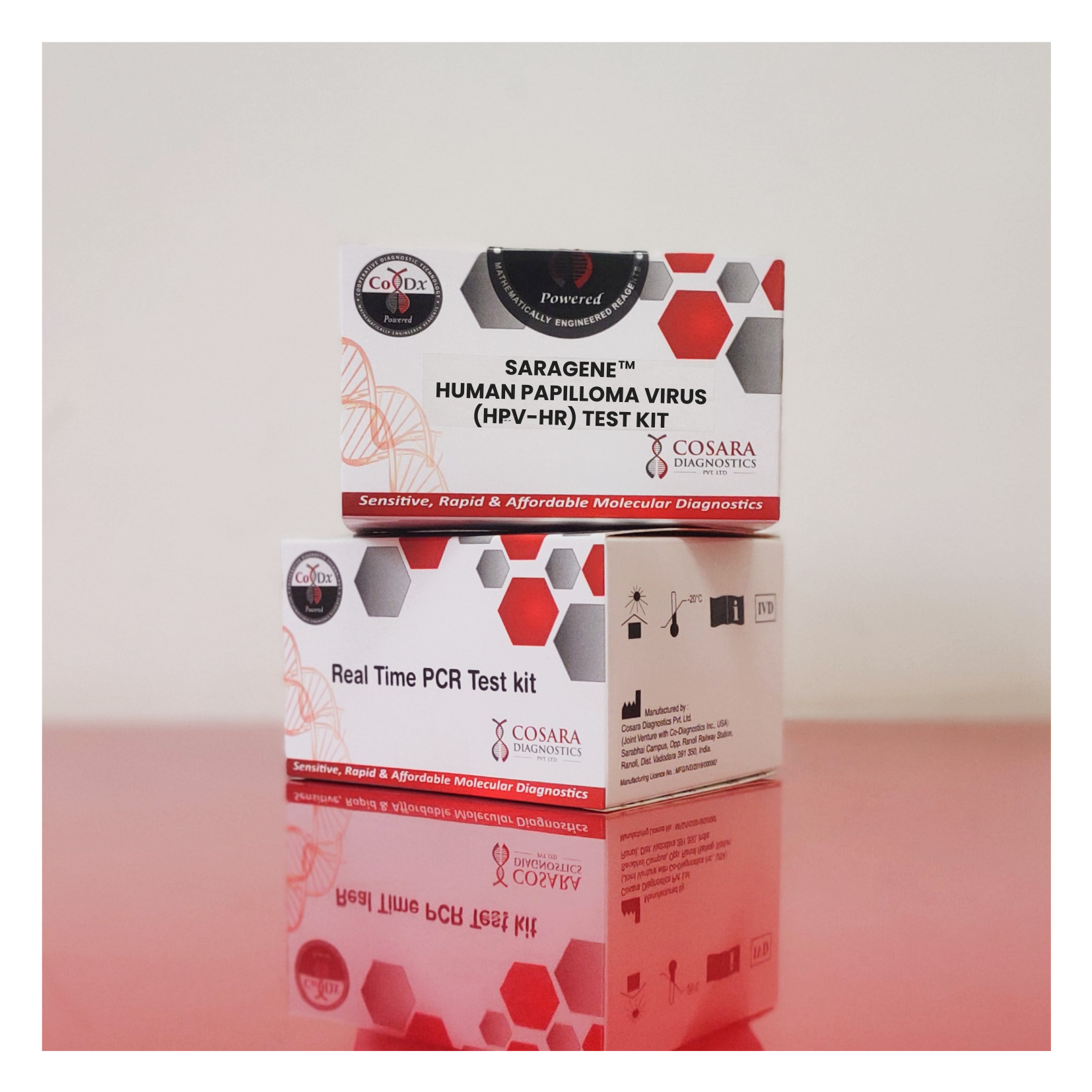 The SARAGENE® Human papillomavirus- High Risk Real-Time PCR (RT-PCR) test is used for detection and differentiation of HPV genotypes 16 and 18 while concurrently detecting other high risk types 31, 33, 35, 39, 45, 51, 52, 56, 58, 59, 66 and 68. The test includes an internal control to identify possible qPCR inhibition and verify the quality of sample extraction. The kit is designed to aid in the diagnosis of HPV during early or acute stages of infection to screen for high risk types of HPV that have been associated with cervical cancer.